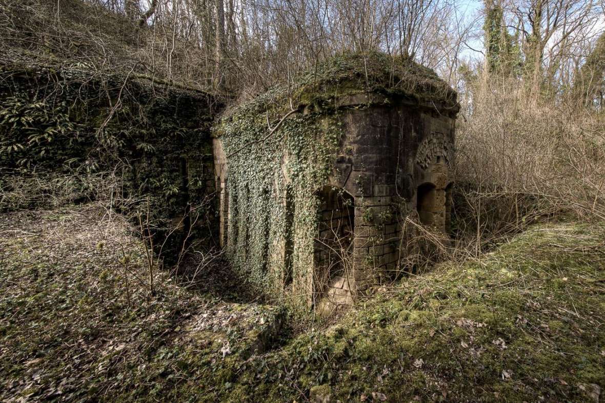 Die hier dargestellte Infanteriestellung mit betonierter Brustwehr und kleinen, durch Stahltüren geschützte Nischen zur Lagerung von Munition ist Teil der Panzerfestung Obergentringen bei Thionville.