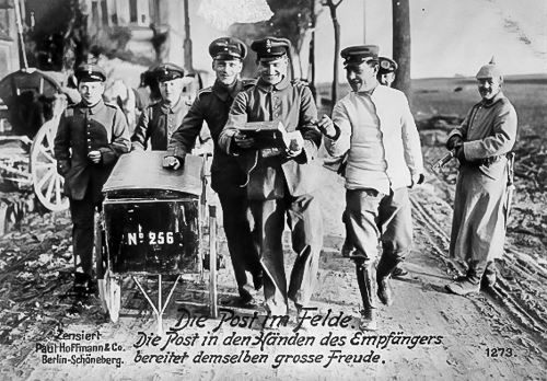 Ein schier unerschöpflicher Strom immer neuer Postkarten bot die Feldpost - also die Nachrichten, die die Soldaten von der Front ihren Liebsten in die Heimat schrieben. Die Motive, die seinerzeit dafür genutzt wurden, erscheinen heute aberwitzig - ja geradezu grotesk. Jetzt galt es allerdings, das Motiv der Postkarte und das Geschriebene irgendwie "in Einklang" zu bringen. Man wollte nicht, dass die Soldaten in Ihren Nachrichten über das Grauen an der Front sprechen. Also zensierte man die Briefe und Postkarten. Es wurden diejenigen aussortiert, die nicht zum offiziellen Bild passten.