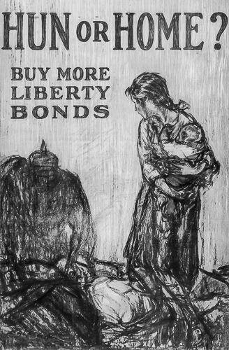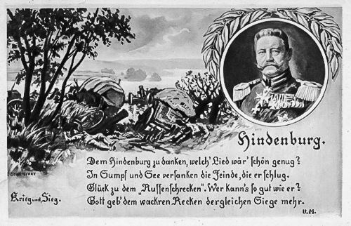 Gleich zu Beginn des Weltkrieges - also im Spätsommer 1914 - wurde General Paul von Hindenburg zum Kriegsheld stilisiert. Der "Sieger von Tannenberg" war für die Propaganda ein gefundenes Fressen. Man hatte eine Leitfigur, die man ins Zentrum stellen konnte und man machte reichlich Gebrauch davon. Man bediente damit den Sehnsucht der Deutschen nach Größe, Erfolg, Schutz und Heldentum. Letzteres war wichtig. Man hatte mit Hindenburg eine Identifikationsfigur, die es auszuschlachten galt. Später drehte sich dies. Es gab nur wenige Heerführer, die die Rolle Hindenburgs in der Propaganda übernehmen konnten. Also wendete man sich dem einfachen, namenlosen Frontsoldaten zu. Um seinen Mut und seinen Einsatz zu unterstützen, wurden die Menschen in Deutschland aufgefordert, Kriegsanleihen zu zeichnen, so dass jeder seinen finanziellen Anteil tragen bzw. ein finanzielles Opfer für den erwarteten Sieg leisten kann.