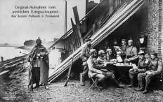 Neben Flugblättern, Postkarten und Plakaten hielten schickte der Auslandsdienst und das BUFA auch zahlreiche Fotografen an die Front, um die Ereignisse auf den Schlachtfeldern festzuhalten. Der Film hingegen, der erst 1895 erfunden wurde, hatte seinerzeit noch eine geringe Bedeutung. Das gilt für beide Seiten. All diese Maßnahmen dienten dazu, die Bevölkerung von der Überlegenheit und Richtigkeit des Krieges zu überzeugen. Also stand häufig der "gute Frontsoldat" im Vordergrund. Oder man zeigte die "Normalität des Lebens an der Front" - fröhliche Soldaten im Schützengraben sitzend. Je schlechter es an der Front stand, desto stärker setzte man darauf. Ein anschauliches Beispiel für diese Vorgehensweise ist auch die Postkarte "Die brennende Wunde Frankreichs". Sie wurde in der Endphase des Ersten Weltkriegs aufgelegt und durch die "Landkarten-Handlung Dietrich Reimer" in Berlin vertrieben. Entgegen objektiver Erkenntnisse versuchte man der Bevölkerung vorzugaukeln, dass man in Frankreich riesige Landgewinne erzielte und dem Feind so eine brennende Wunde zufügte. Brennend war die Wunde in der Tat, denn beide Seiten verzeichneten Millionen gefallener und verletzter Soldaten. Nur den Landgewinn gab es so nicht - jedenfalls nicht seit der Erste Weltkrieg zum Stellungskrieg wurde.