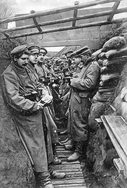 Die Schützengräben beider Seiten waren häufig nur wenige Meter voneinander entfernt. 30 – 40 Meter, manchmal hundert Meter. Man konnte den Feind hören. Das Leben (und Sterben) in den Gräben und Unterständen prägte den Alltag der Frontsoldaten. Enge, Schlamm und Morast, das Fehlen jeglicher Privatsphäre, unglaubliche hygienische Zustände, Ratten, Läuse und der permanente Gestank toter Kameraden, die man im Niemandsland zwischen den Gräben liegen lassen musste, zermürbten die Soldaten. Der Tod als ständiger Begleiter tat sein Übriges.