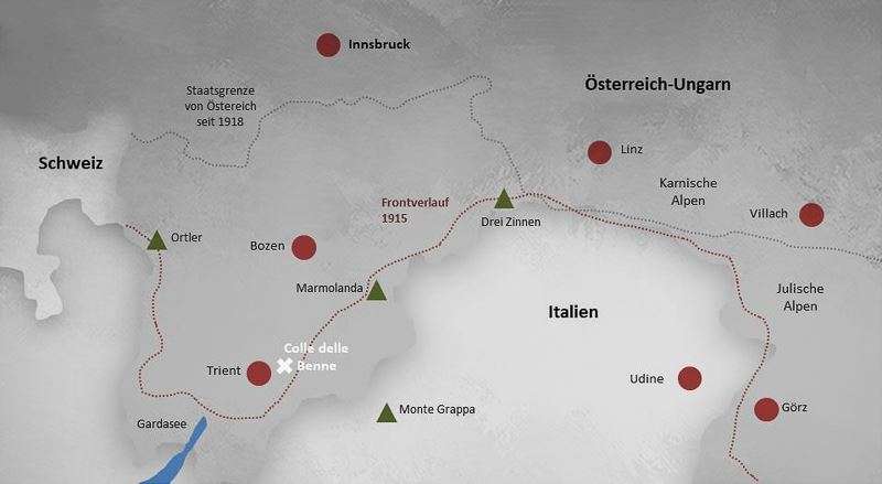Verlauf der Alpenfront zwischen Österreich-Ungarn und Italien 1915. Colle delle Benne.