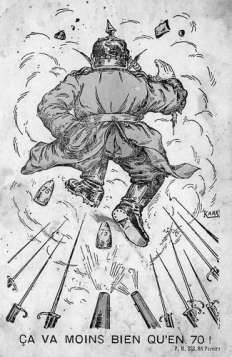 Neben Flugblättern, Postkarten und Plakaten hielten schickte der Auslandsdienst und das BUFA auch zahlreiche Fotografen an die Front, um die Ereignisse auf den Schlachtfeldern festzuhalten. Der Film hingegen, der erst 1895 erfunden wurde, hatte seinerzeit noch eine geringe Bedeutung. Das gilt für beide Seiten. All diese Maßnahmen dienten dazu, die Bevölkerung von der Überlegenheit und Richtigkeit des Krieges zu überzeugen. Also stand häufig der "gute Frontsoldat" im Vordergrund. Oder man zeigte die "Normalität des Lebens an der Front" - fröhliche Soldaten im Schützengraben sitzend. Je schlechter es an der Front stand, desto stärker setzte man darauf. Ein anschauliches Beispiel für diese Vorgehensweise ist auch die Postkarte "Die brennende Wunde Frankreichs". Sie wurde in der Endphase des Ersten Weltkriegs aufgelegt und durch die "Landkarten-Handlung Dietrich Reimer" in Berlin vertrieben. Entgegen objektiver Erkenntnisse versuchte man der Bevölkerung vorzugaukeln, dass man in Frankreich riesige Landgewinne erzielte und dem Feind so eine brennende Wunde zufügte. Brennend war die Wunde in der Tat, denn beide Seiten verzeichneten Millionen gefallener und verletzter Soldaten. Nur den Landgewinn gab es so nicht - jedenfalls nicht seit der Erste Weltkrieg zum Stellungskrieg wurde.