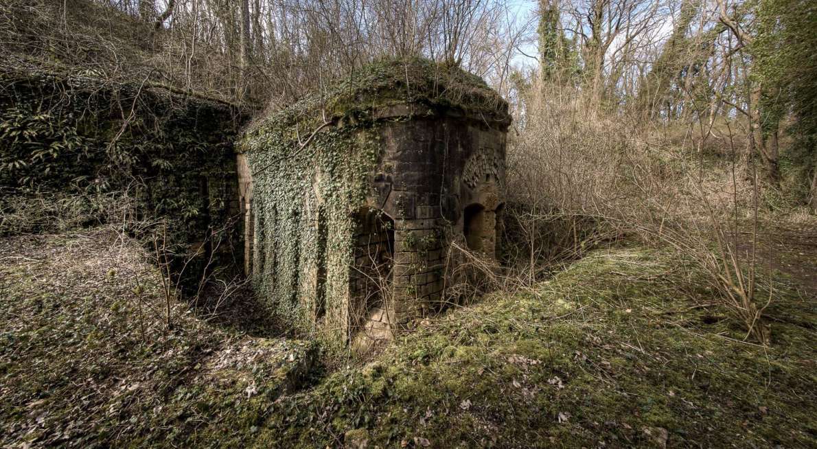 Das nenne ich mal eine Grabenstreiche. Sie sicherte den südlichen Zugang zur Festung. Und sie hatte gleichzeitig die Aufgabe, den Zugang zum Graben, der die Festung umgibt ebenfalls zu sichern. Das erklärt auch die besondere Bauweise der Grabenstreiche. Von hier aus konnte man in alle Richtungen wirken, um ungebetene Besucher den Zutritt zum Kernbereich der Festung zu verwehren. Direkt neben dem Werk befindet sich ein kleines Eingangstor und von dort aus gelangte man über einen steil ansteigenden Weg zum südlichen Teil der Festung. Heute ist dieser fast nicht mehr zu begehen, weil der total zugewuchert ist. Die Natur hat hier besonders deutlich das zurückgenommen, was ihr gehört. Ich selbst gelange zur Grabenstreiche nur, weil ich einen steilen Abhang herunterrutschte. Der Zugang über den eigentlichen Weg war nicht zu meistern ... und der Abhang war obendrein viel kürzer (Stand: 2018).