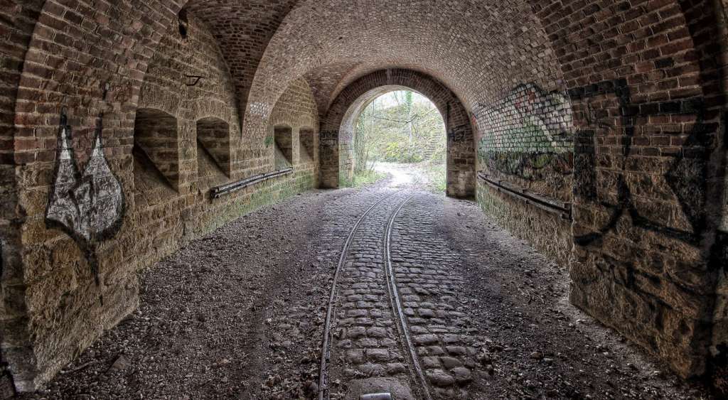 Feste Prinz Friedrich-Karl: nördlicher Zugang mit Blick in das Innere der Festung. Im Hintergrund - recht undeutlich zu erkennen - befindet sich eine weitere Sicherung. Hat jemand es tatsächlich ungewollt geschafft, das Eingangstor mit seinen umfangreichen Sicherungen zu durchschreiten, so wurde er dort in Empfang genommen. Das konnte niemand überleben.